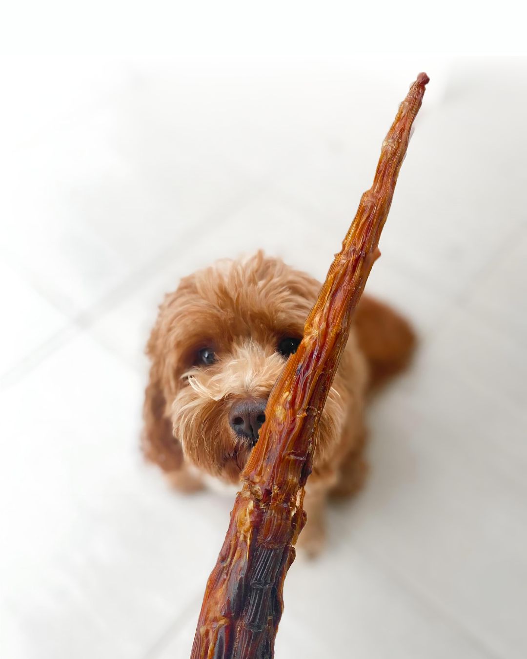 I actually placed a really large order and love the concept of them being natural and from the farm etc, unfortunately I found that the treats are very brittle and then sharp, my dog keeps choking on them and I need to supervise him and take the small shards away from him as he eats them. Not very handy to have to supervise him when I really needed treats to keep him engaged without me. I am not sure what to do with them all now.